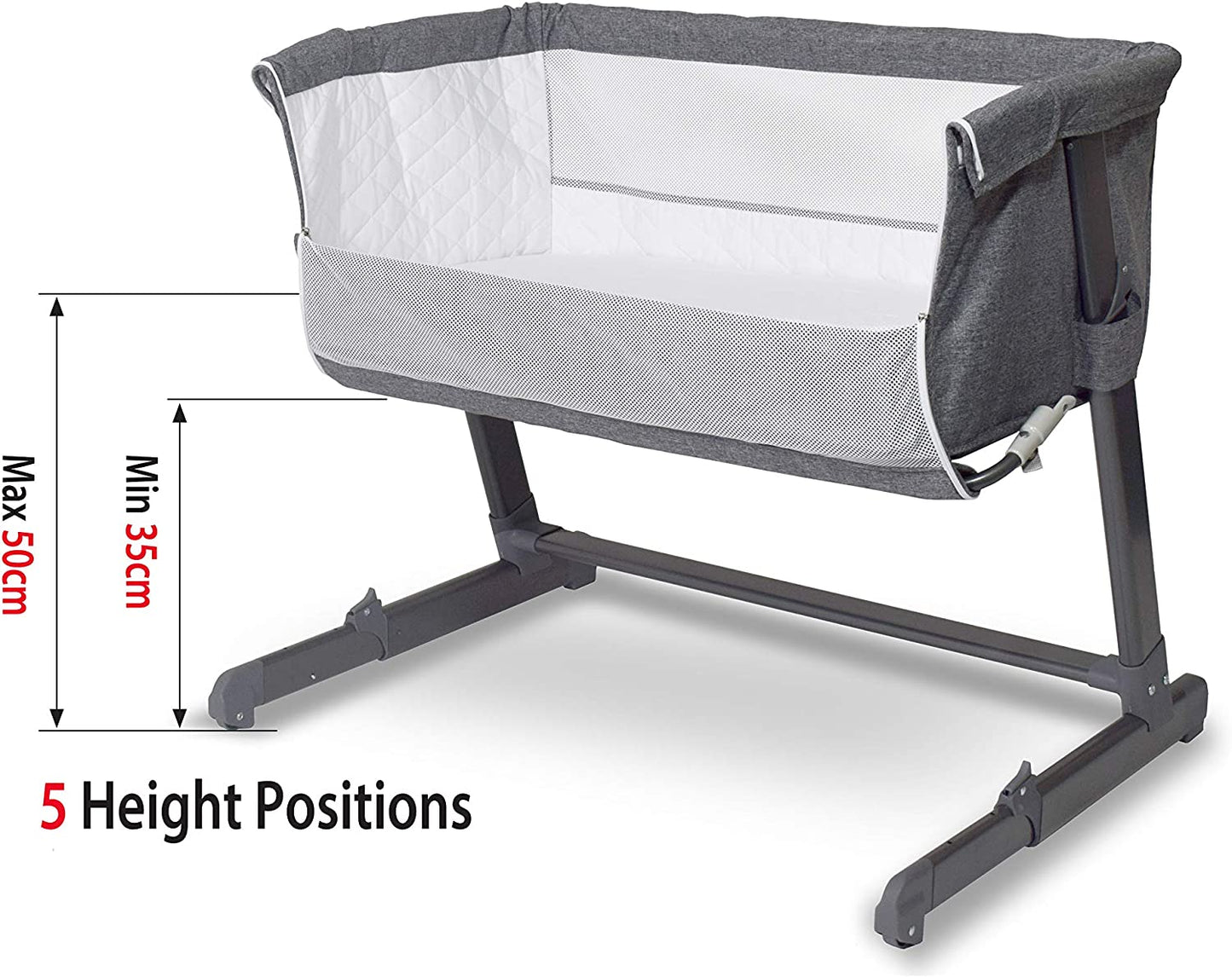 This next to you baby crib features a padded mattress and super soft quilted sides to keep your little one comfortable, with ventilated fabrics for breathability. Tilting the anti-reflux incline can help relieve baby’s congestion. Soft mesh sides offer superior ventilation and make sure you have a clear view of baby.